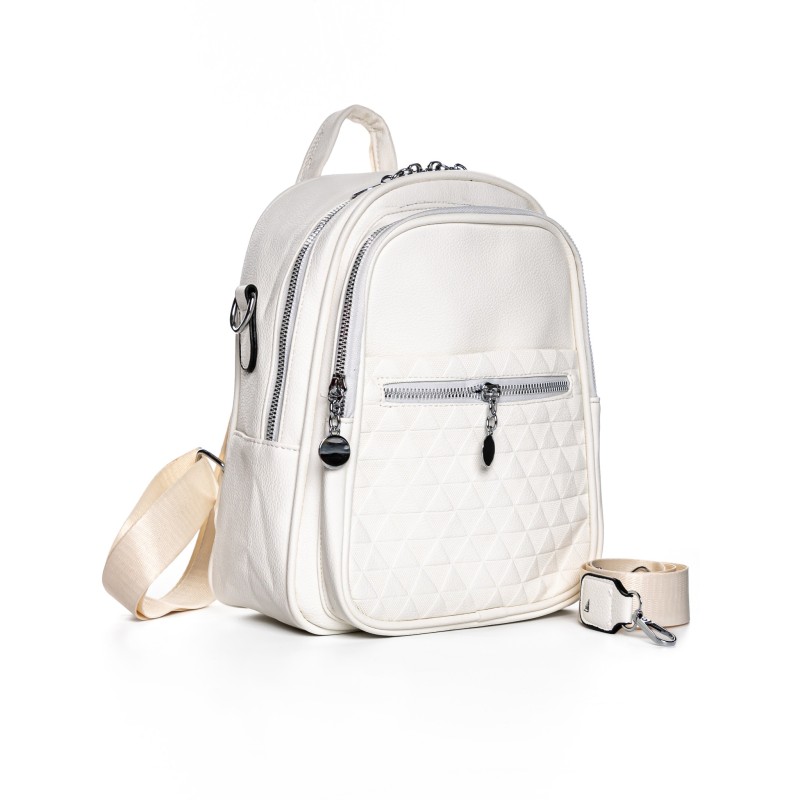 V MeiMall nájdete Dámsky ruksak 5ZA253 Biely | Mei. Živá farba Biely spolu s kvalitnými materiálmi a moderným dizajnom vás ohromí! MeiMall je internetový obchod, ktorý ponúka široký sortiment produktov pre ženy, mužov a deti. Tu nájdete topánky, oblečenie, tašky a doplnky. Dodanie je rýchle a lehota na vrátenie je 14 dní.