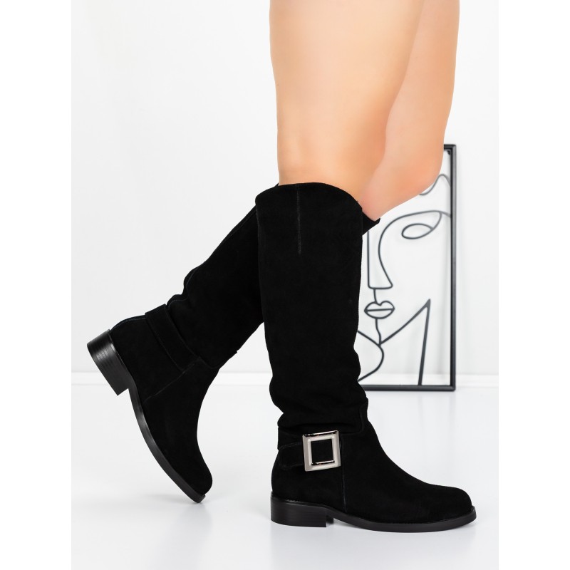 Dámske čižmy z pravej kože 52AD3 Čierna | Pantoful