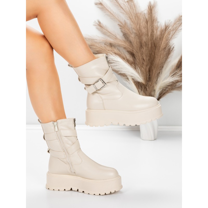 Dámska členková obuv na platforme 5W83 Béžová | Mei