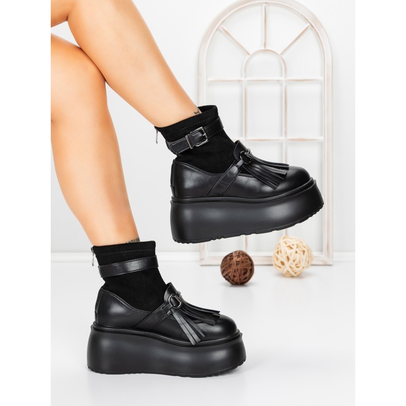 Dámska členková obuv na platforme 56WL12 Čierna | Mei