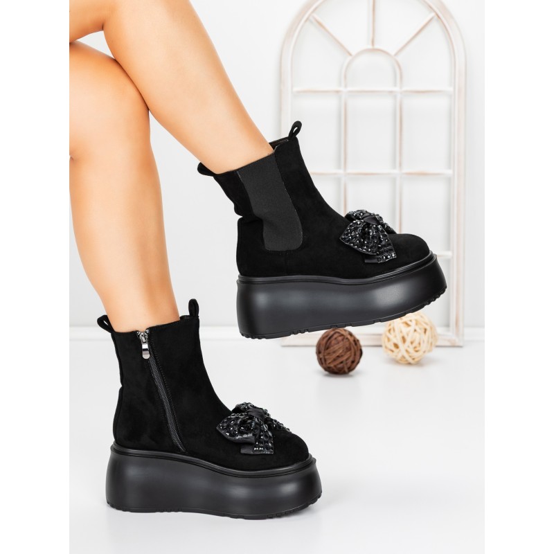 Dámska členková obuv na platforme 56WL10 Čierna | Mei