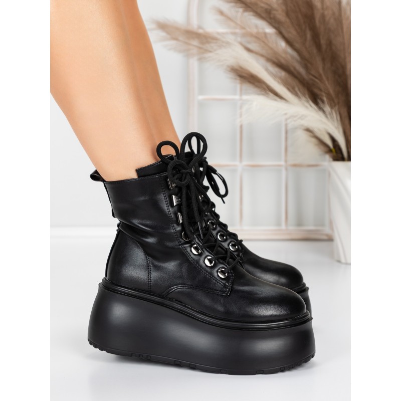 Dámska členková obuv na platforme 56WL16 Čierna | Mei