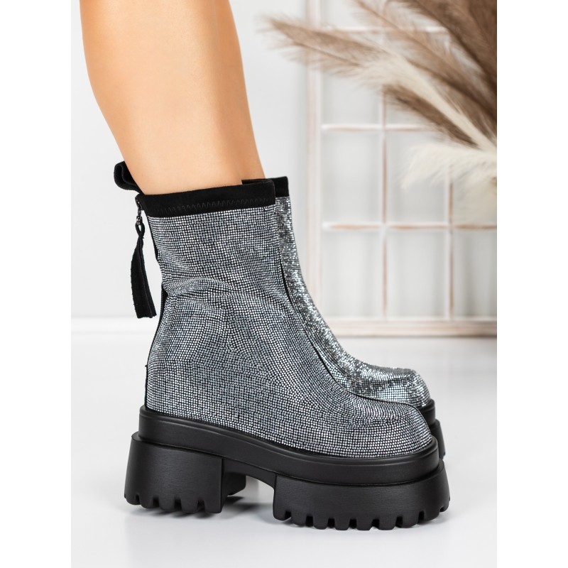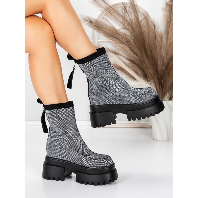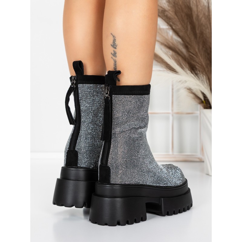 Dámska členková obuv na platforme 5SJN23 Čierna-Biely | Mei