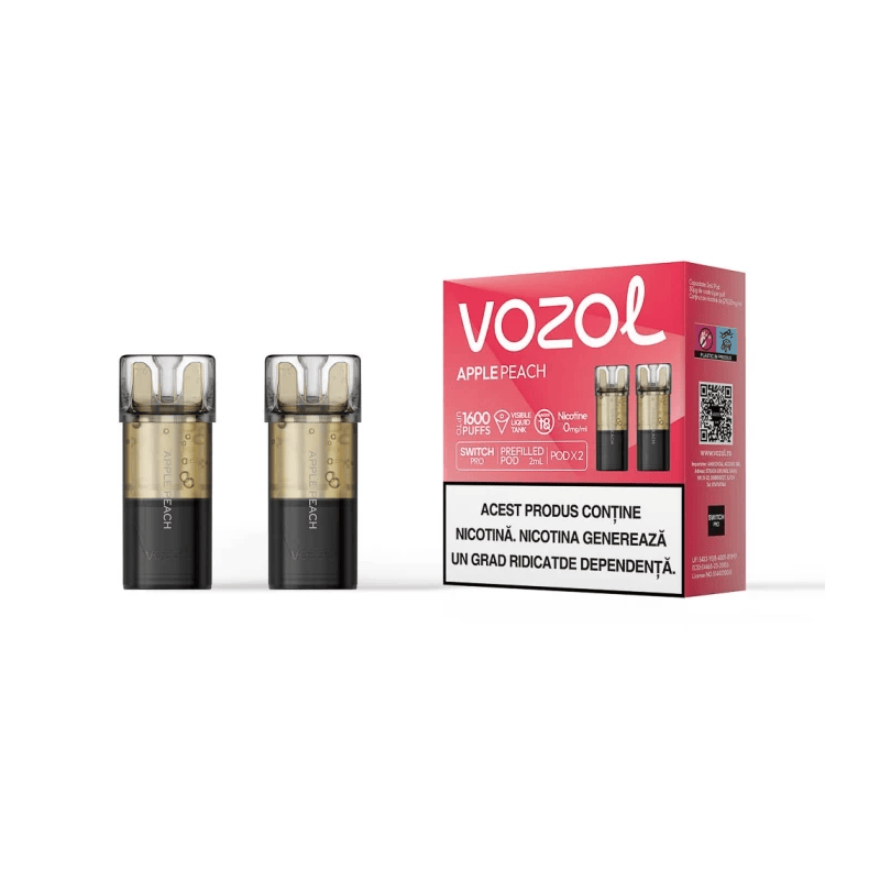 VOZOL SWITCH PRO APPLE PEACH 0 NICOTINA je dobíjacia elektronická vodná fajka, vopred naplnená 2ml E-Liquid s 0% dostatočným množstvom nikotínu na vychutnanie si až 800 ťahov a má lahodnú vôňu jablko & broskyňa. Je vybavená nabíjateľnou batériou {battery_capacity} , špeciálne arómy, prémiový dizajn a žiarivé farby. Inovatívny atomizačný systém a ergonomický náustok vám ponúkajú skvelé pohodlie pri vapovaní.