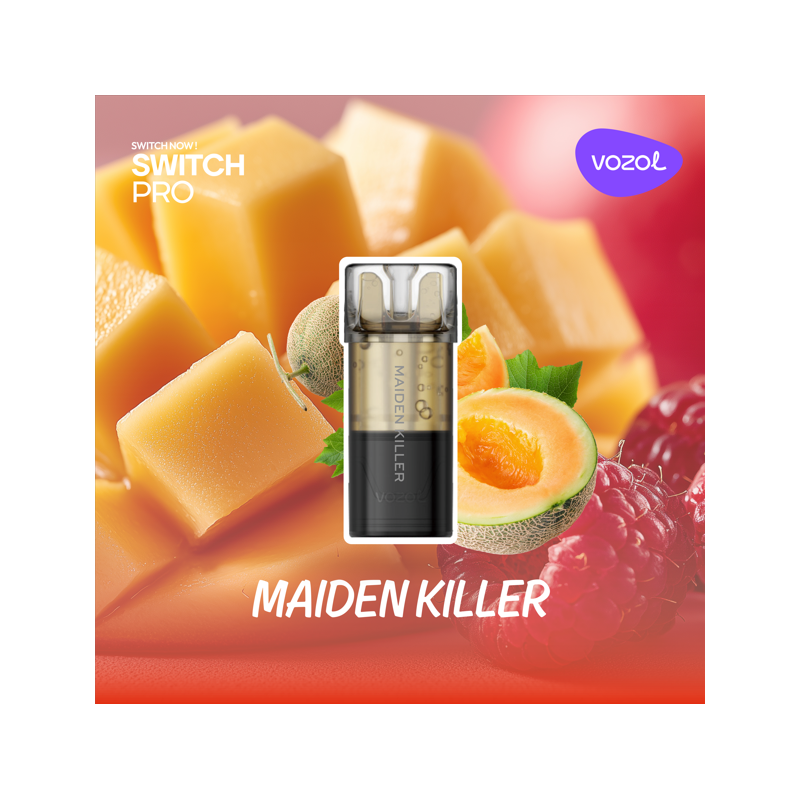 VOZOL SWITCH PRO MAIDEN KILLER je dobíjacia elektronická vodná fajka, vopred naplnená 2ml E-Liquid s 2% dostatočným množstvom nikotínu na vychutnanie si až 1000 ťahov a má lahodnú vôňu melón & mango & bobule. Je vybavená nabíjateľnou batériou {battery_capacity} , špeciálne arómy, prémiový dizajn a žiarivé farby. Inovatívny atomizačný systém a ergonomický náustok vám ponúkajú skvelé pohodlie pri vapovaní.