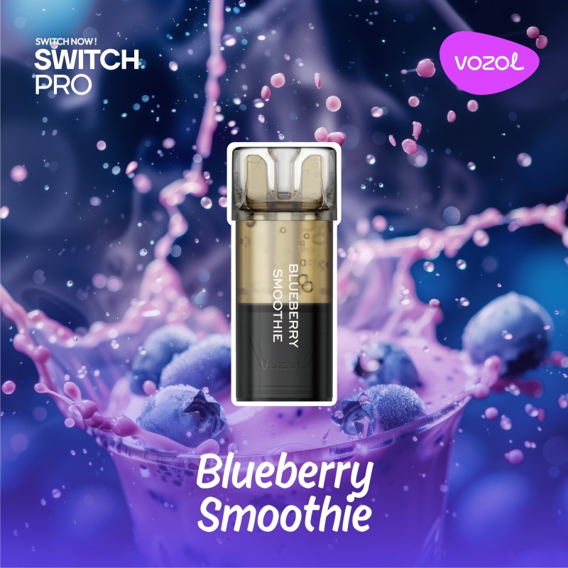 VOZOL SWITCH PRO BLUEBERRY SMOOTHIE je dobíjacia elektronická vodná fajka, vopred naplnená s 2% dostatočným množstvom nikotínu na vychutnanie si až 1000 ťahov a má lahodnú vôňu Čučoriedkové smoothie. Je vybavená nabíjateľnou batériou {battery_capacity} , špeciálne arómy, prémiový dizajn a žiarivé farby. Inovatívny atomizačný systém a ergonomický náustok vám ponúkajú skvelé pohodlie pri vapovaní.