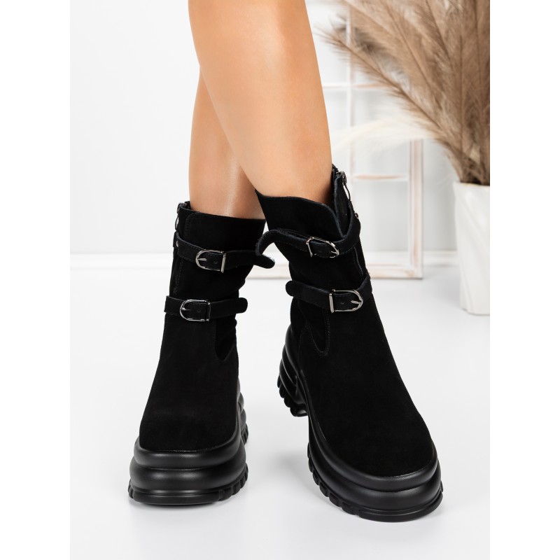Dámske čižmy z prírodnej kože 5W62 Čierna | Pantoful