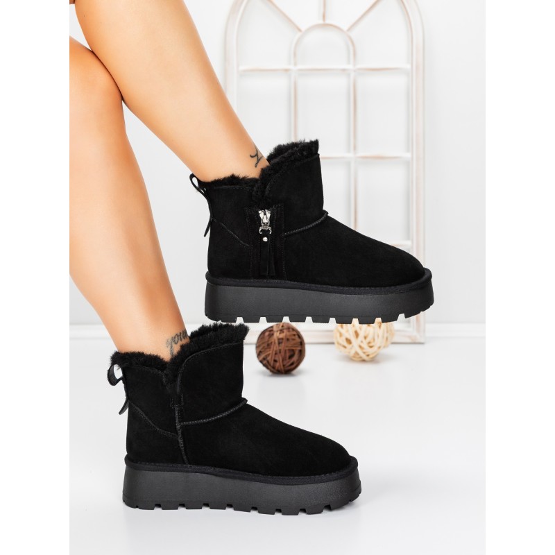 Dámske čižmy z prírodnej kože 5W95 Čierna | Pantoful