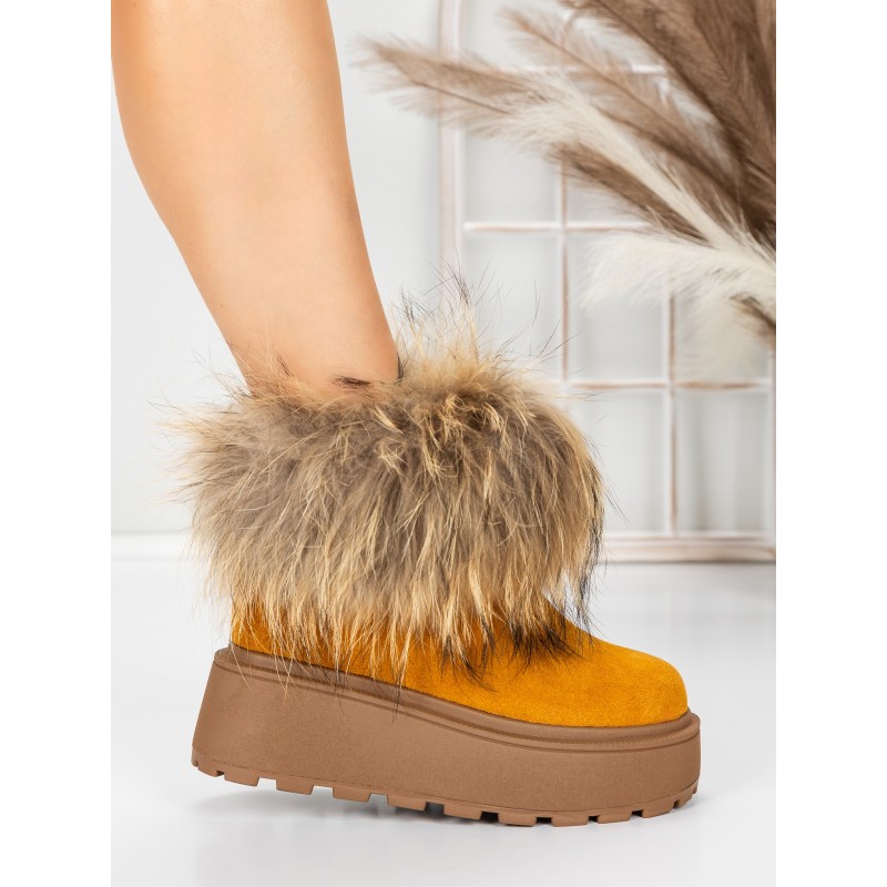 Dámske čižmy z prírodnej kože 3ASJN73 Žltá | Pantoful