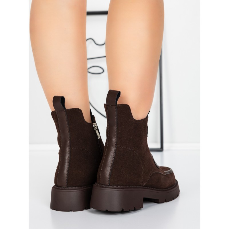 Dámske čižmy z prírodnej kože 52AD7 Hnedá | Pantoful