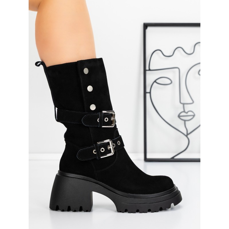 Dámske čižmy z prírodnej kože 52AD11 Čierna | Pantoful