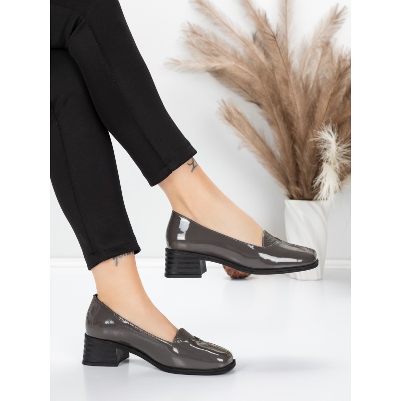 Topánky na podpätku z pravej kože 1355-10 Šedá | Advancer