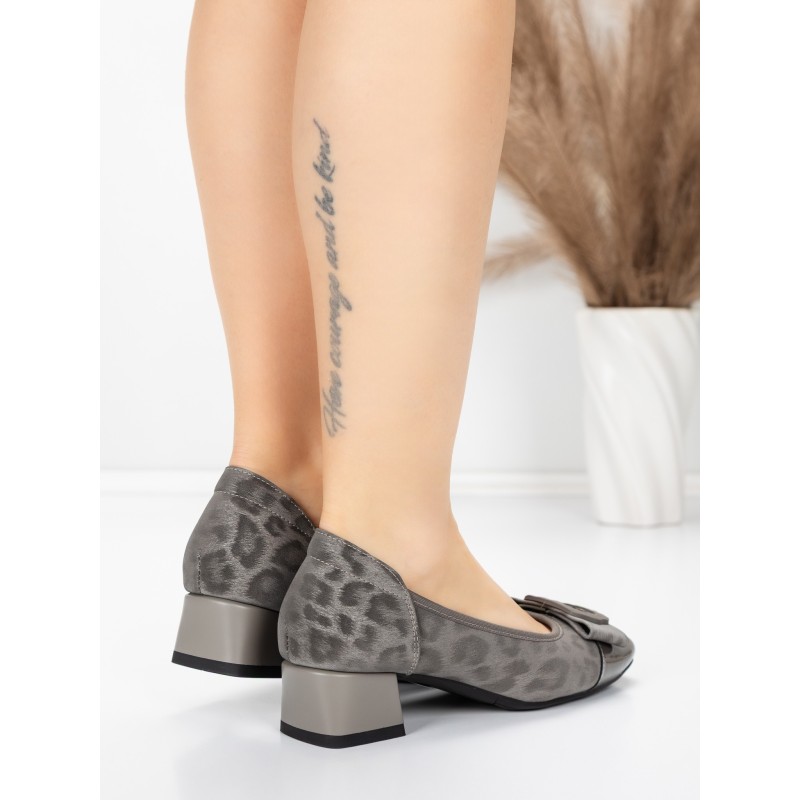 Topánky na podpätku z pravej kože 22163-90 Šedá | Advancer