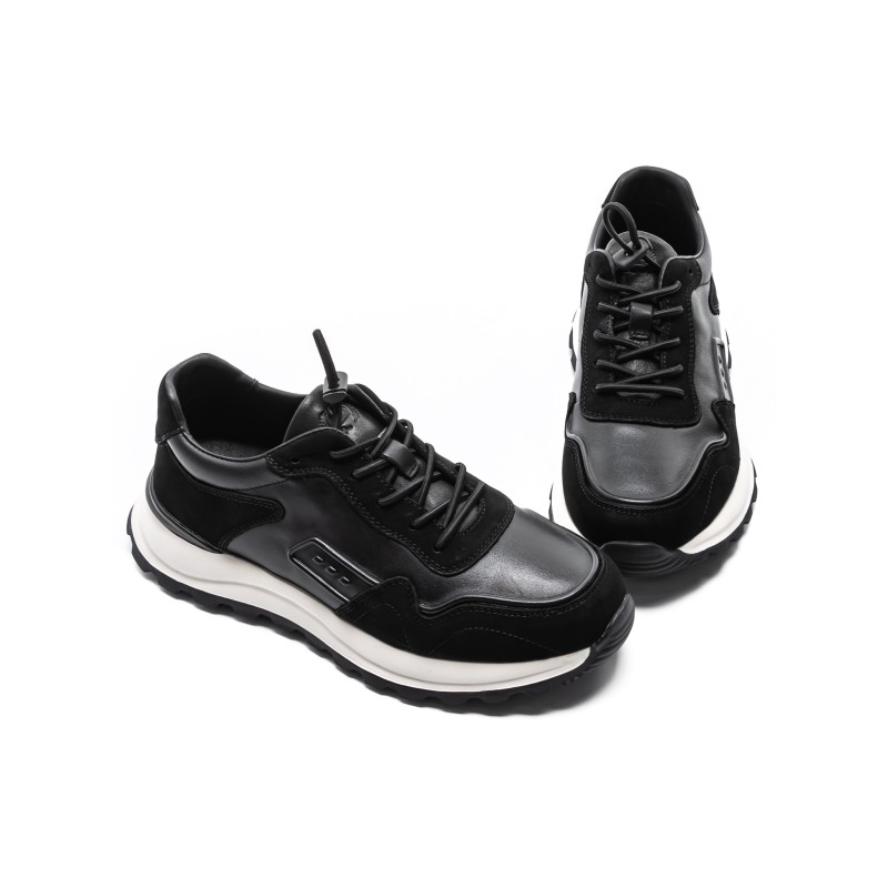 Pánska športová obuv vyrobená z prírodnej kože 8077 Čierna-Biely | Advancer