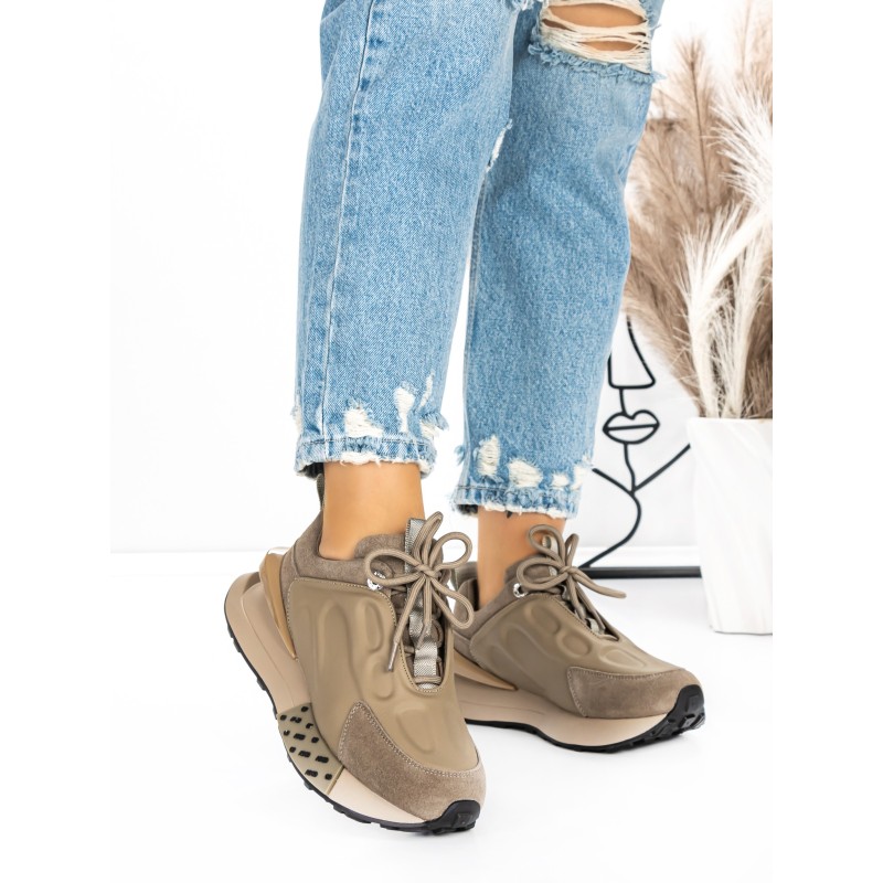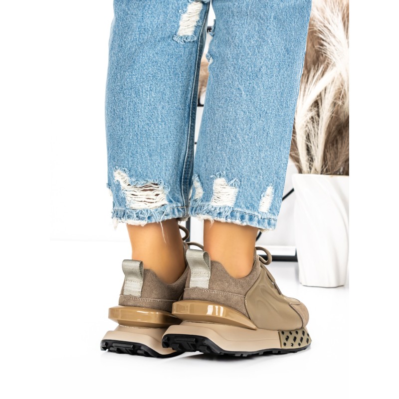 Dámska športová obuv vyrobená z prírodnej kože 5SZ12 Khaki farba | Pantoful
