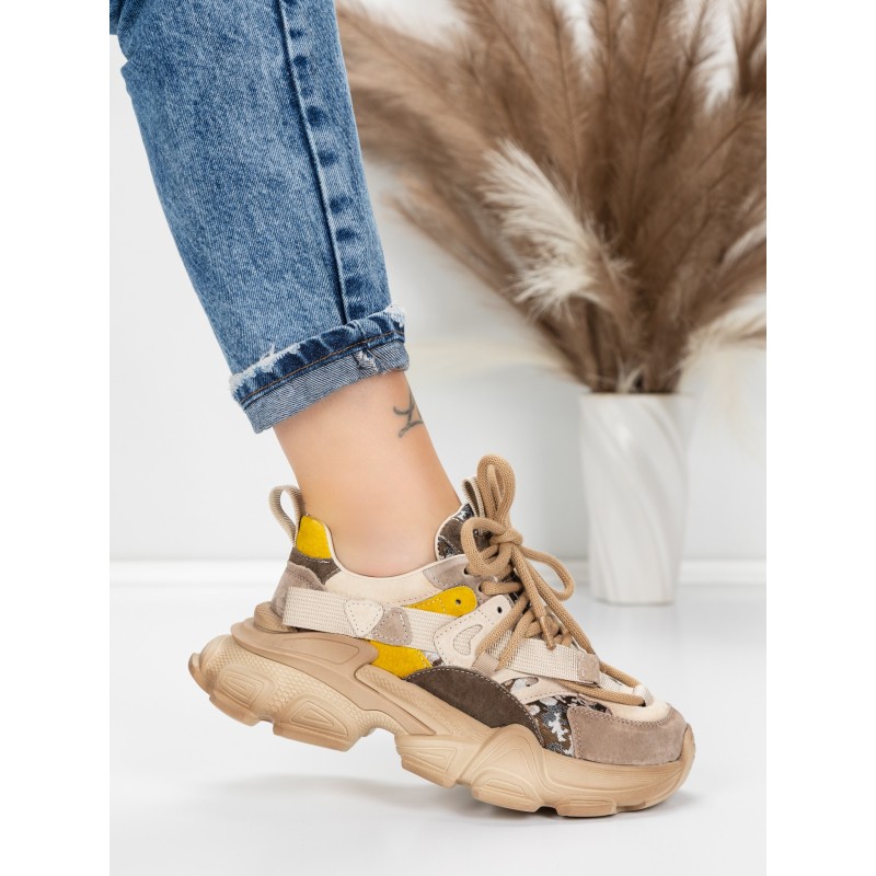 Dámska športová obuv vyrobená z prírodnej kože Y5759-1 Broskyňová | Advancer