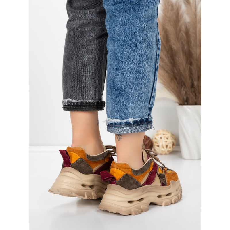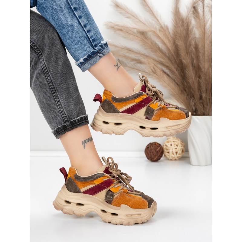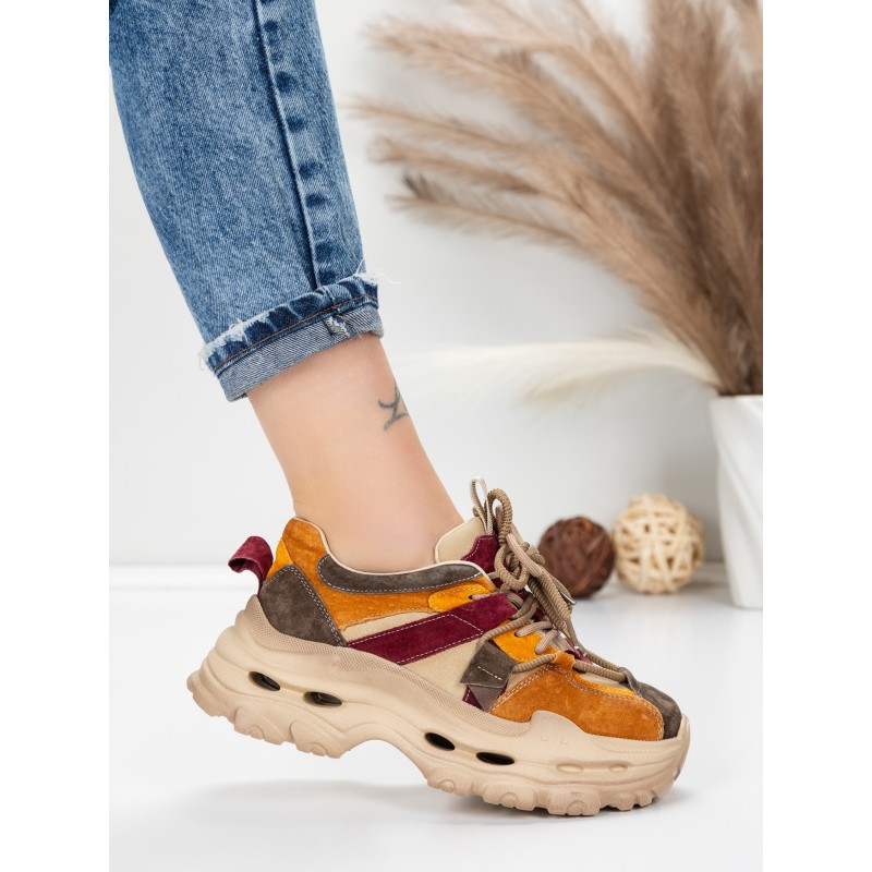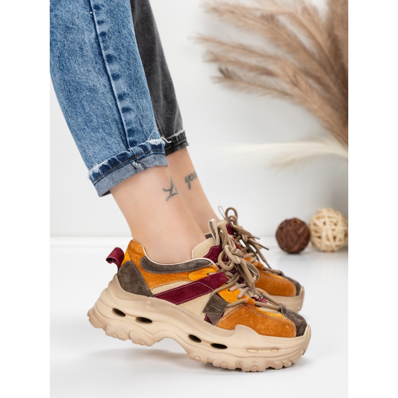 Dámska športová obuv vyrobená z prírodnej kože HY2986 Broskyňová-Bordová | Franco Gerardo