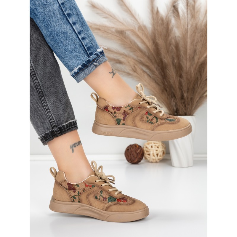 Dámska športová obuv vyrobená z prírodnej kože 2536 Khaki farba | Franco Gerardo