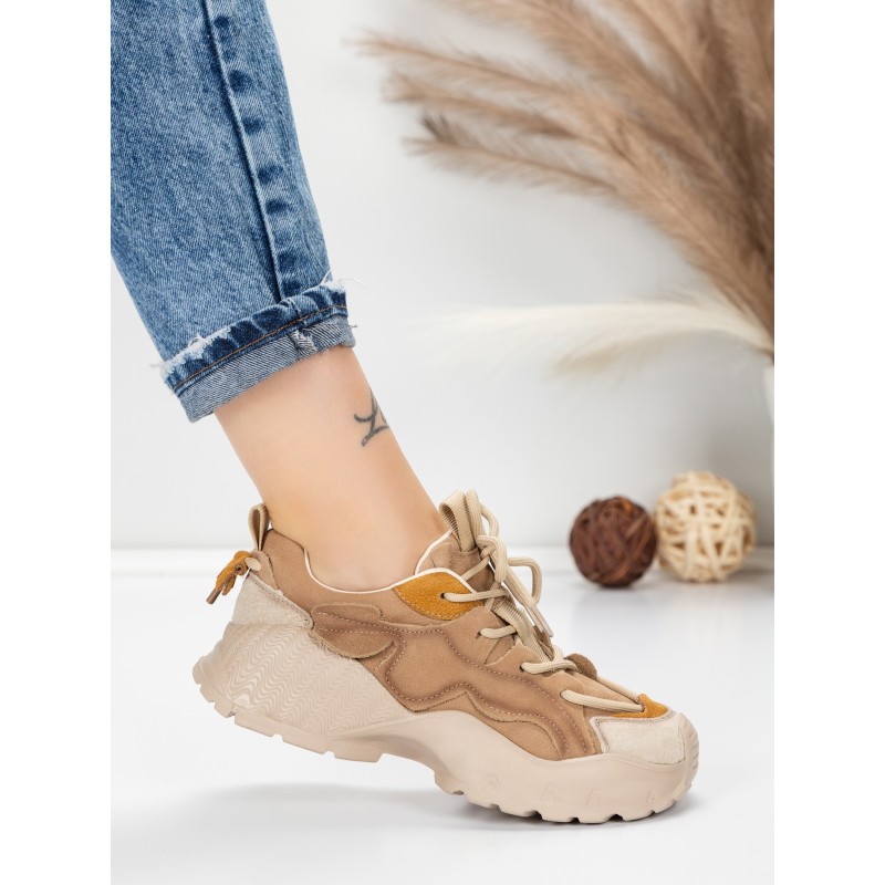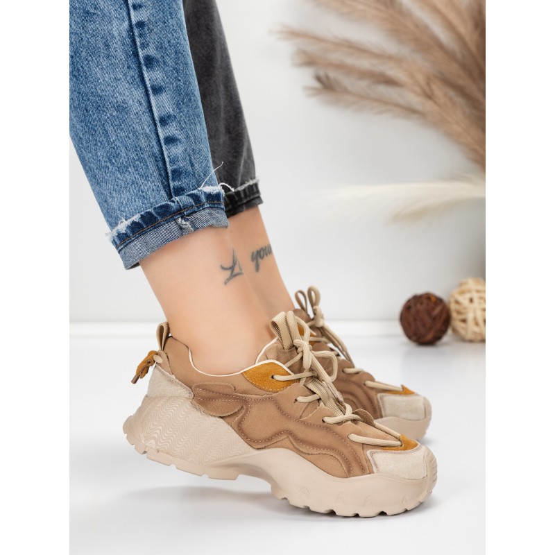Dámska športová obuv vyrobená z prírodnej kože 7110 Khaki farba-Krémovej farby | Franco Gerardo