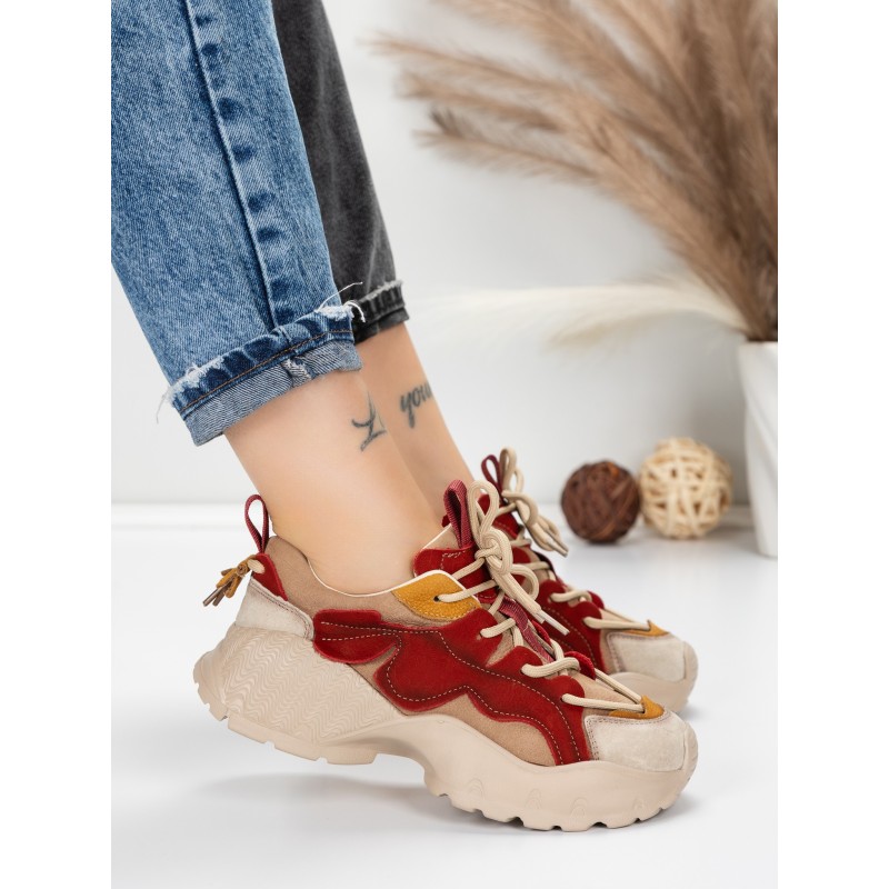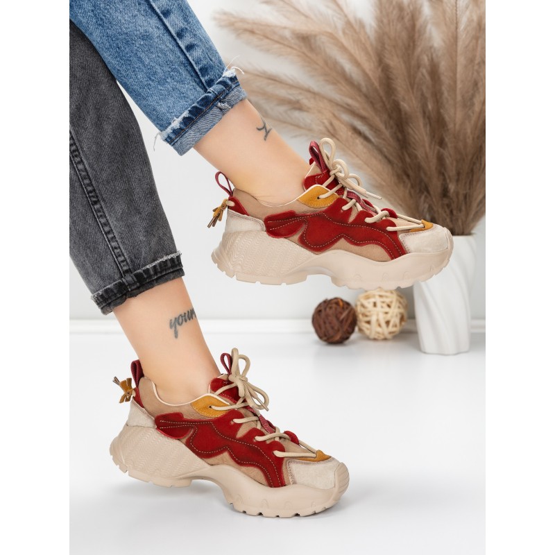 Dámska športová obuv vyrobená z prírodnej kože 7110 Červená-Krémovej farby | Franco Gerardo