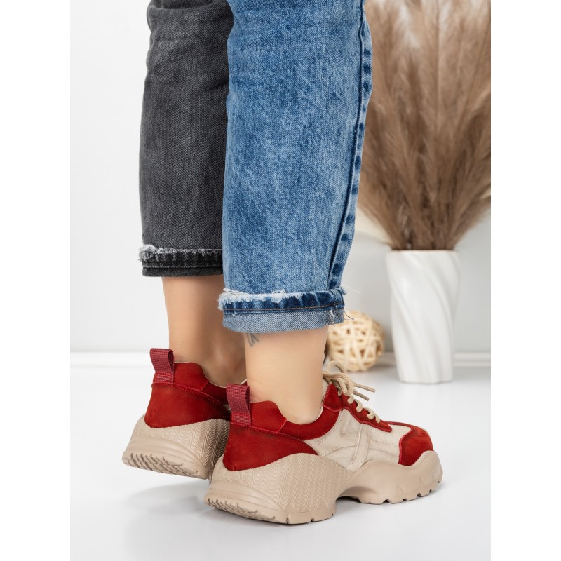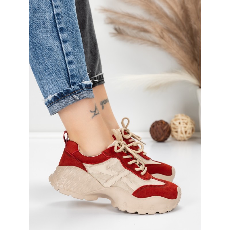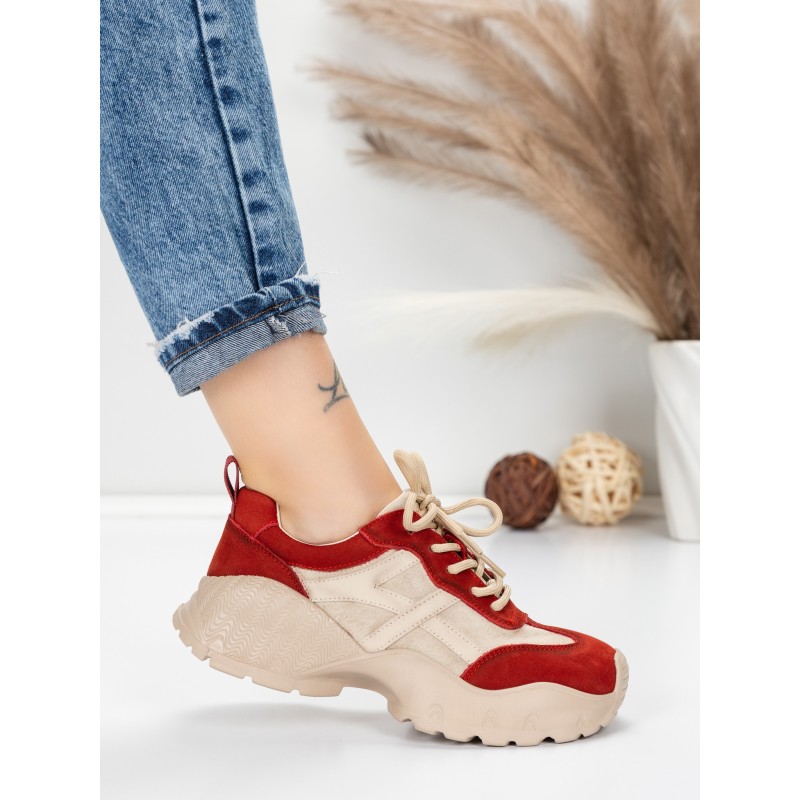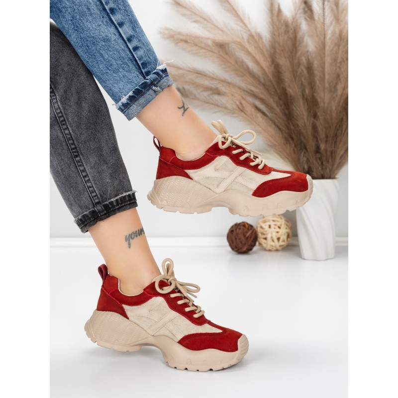 Dámska športová obuv vyrobená z prírodnej kože 7109 Červená-Krémovej farby | Franco Gerardo