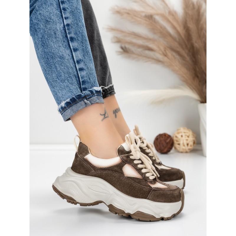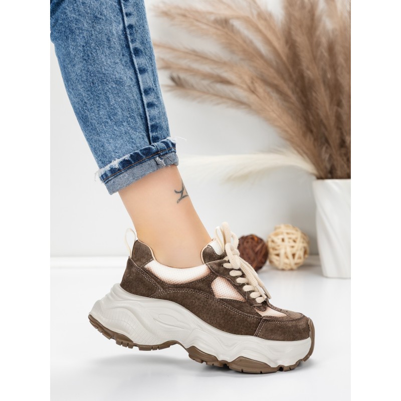Dámska športová obuv vyrobená z prírodnej kože HY1333 Káva-Krémovej farby | Franco Gerardo