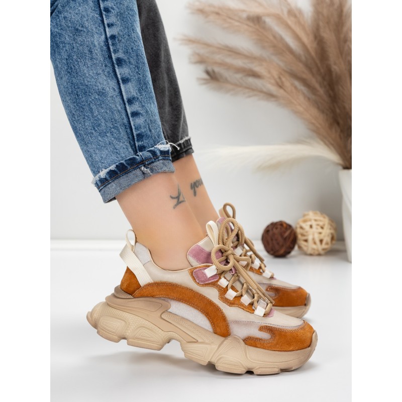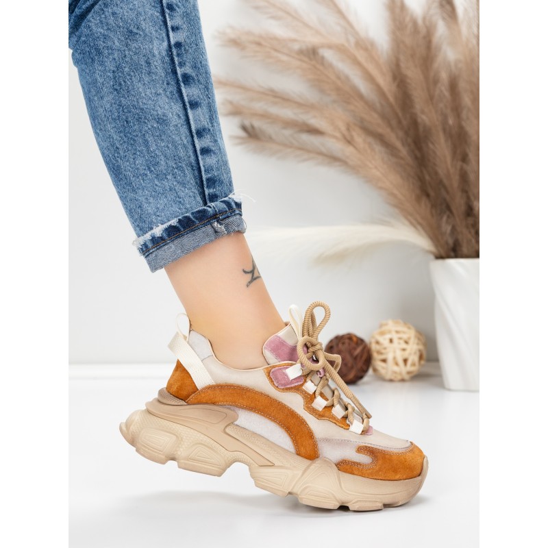 Dámska športová obuv vyrobená z prírodnej kože Y5758-2 Khaki farba-Ružová | Franco Gerardo