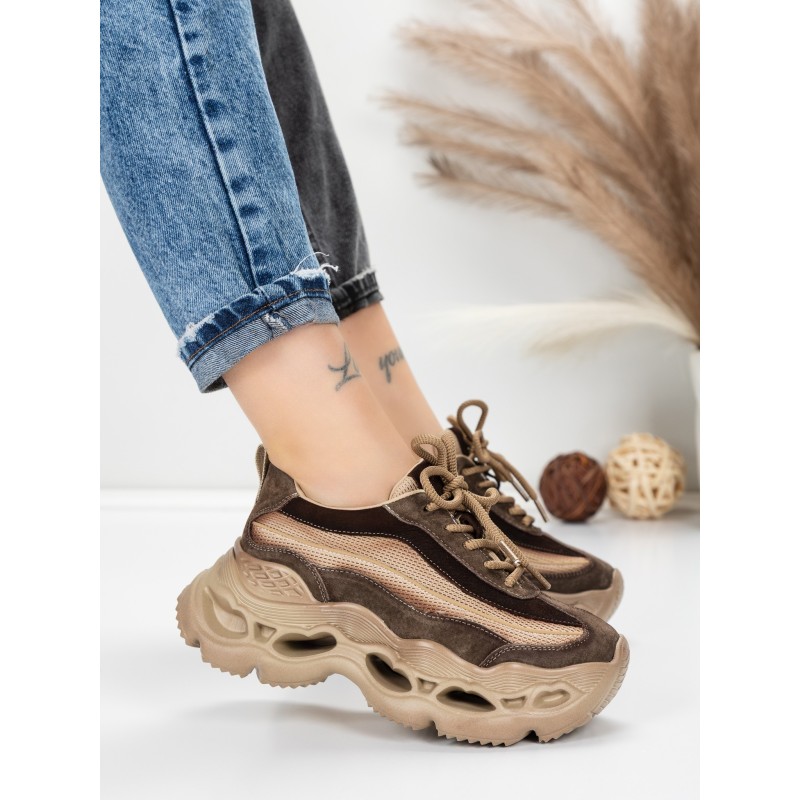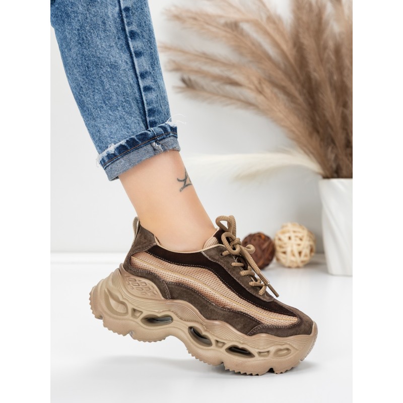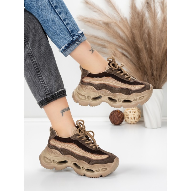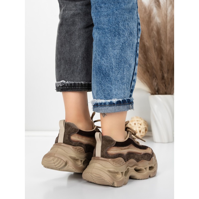 Dámska športová obuv vyrobená z prírodnej kože HY6376 Káva | Franco Gerardo