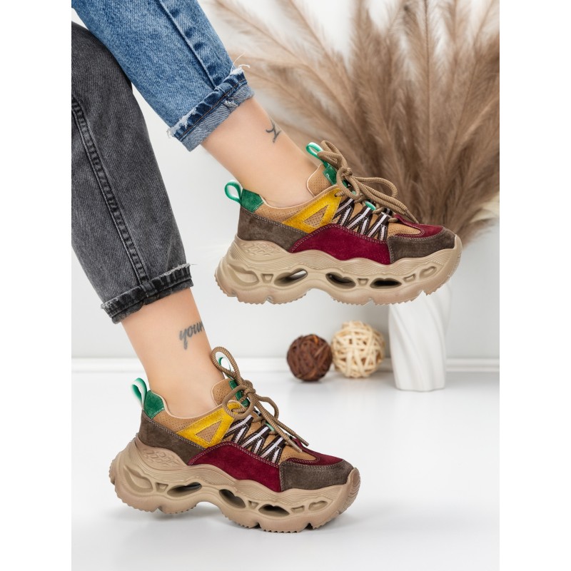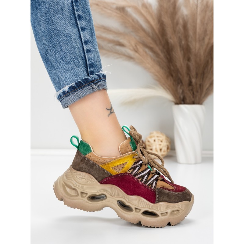 Dámska športová obuv vyrobená z prírodnej kože HY6383 Bordová-Zelená | Franco Gerardo