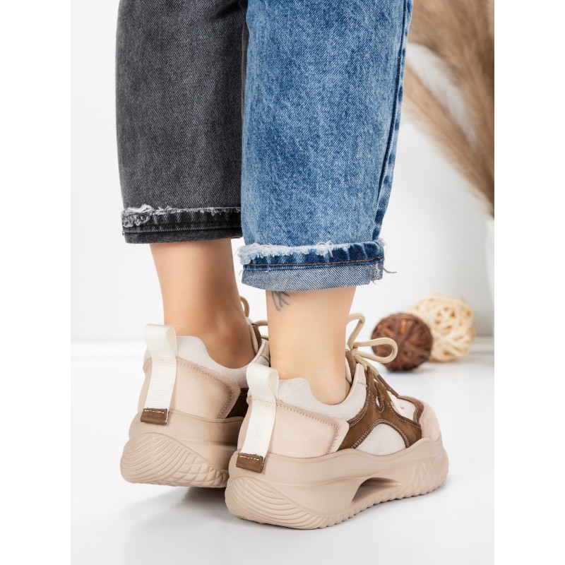 Dámska športová obuv vyrobená z prírodnej kože 2577 Krémovej farby-Káva | Franco Gerardo