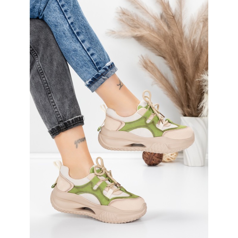 Dámska športová obuv vyrobená z prírodnej kože 2577 Krémovej farby-Svetlo zelená | Franco Gerardo