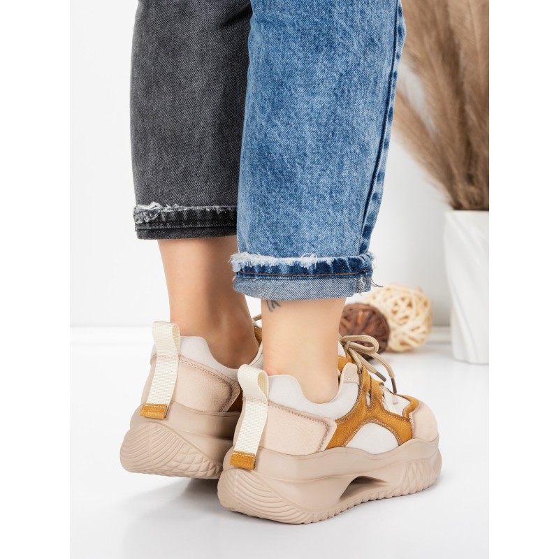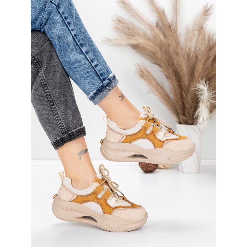 Dámska športová obuv vyrobená z prírodnej kože 2577 Krémovej farby-Žltá | Franco Gerardo