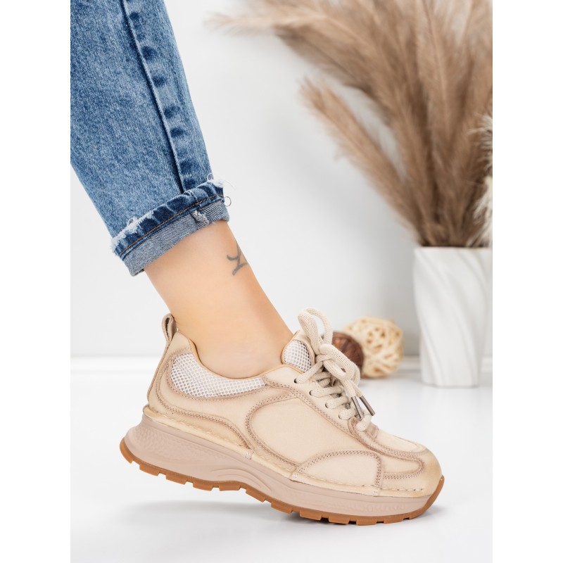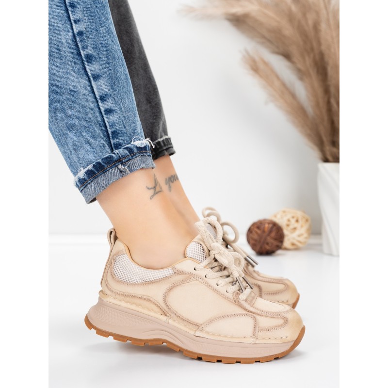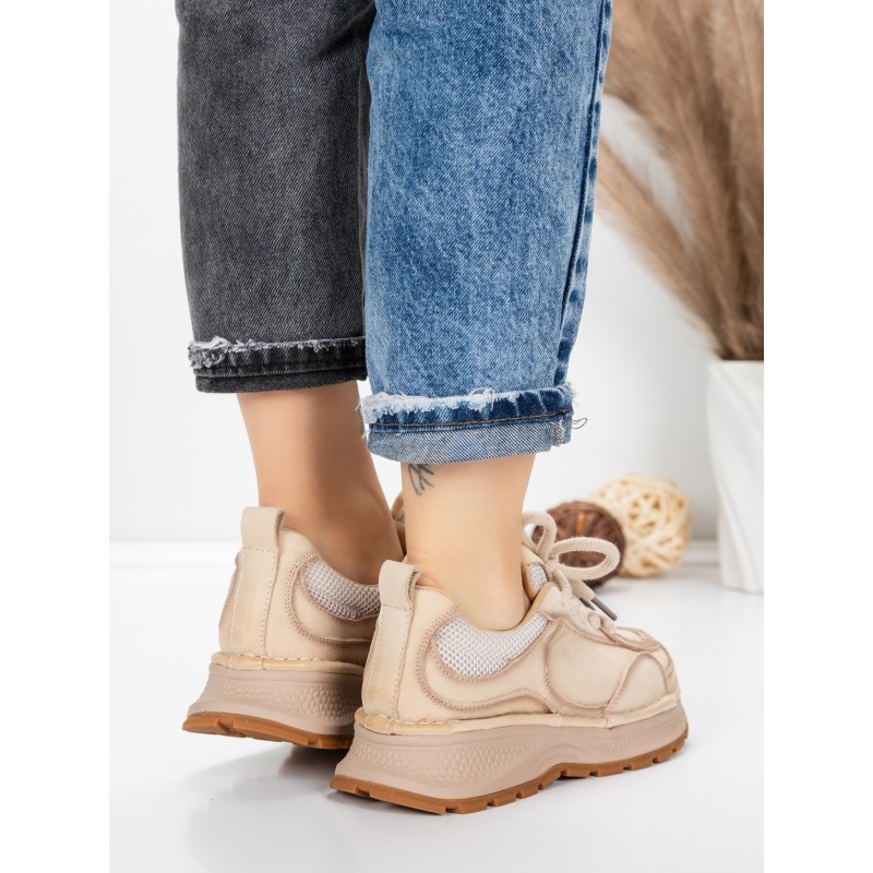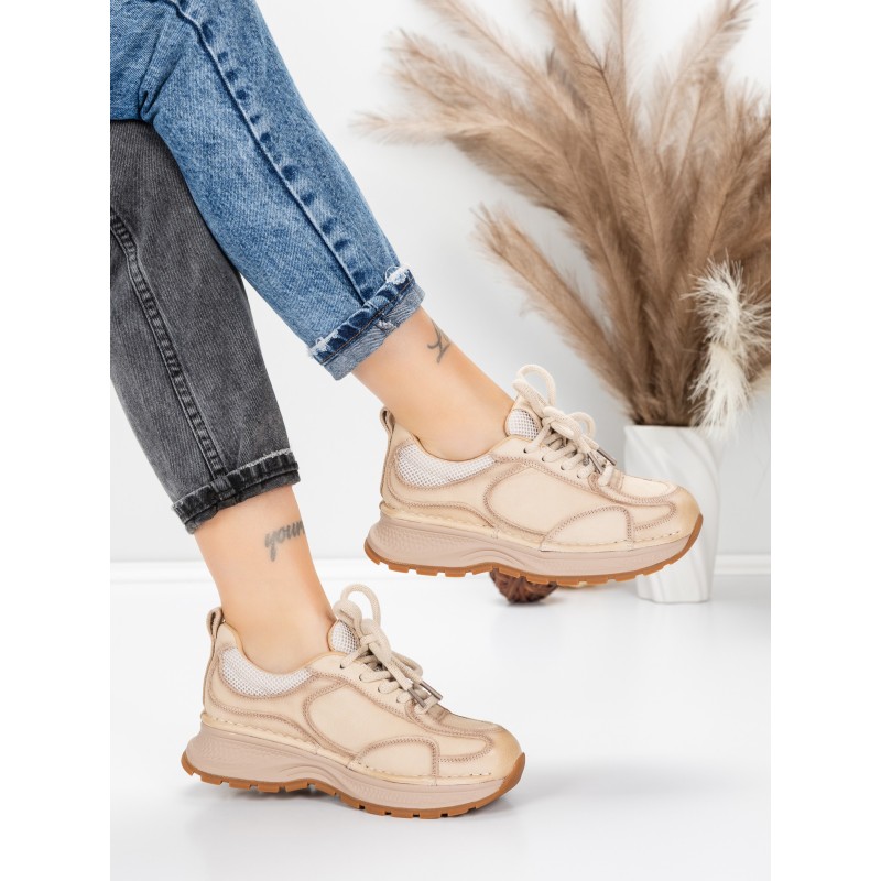 Dámska športová obuv vyrobená z prírodnej kože 10018 Krémovej farby | Franco Gerardo