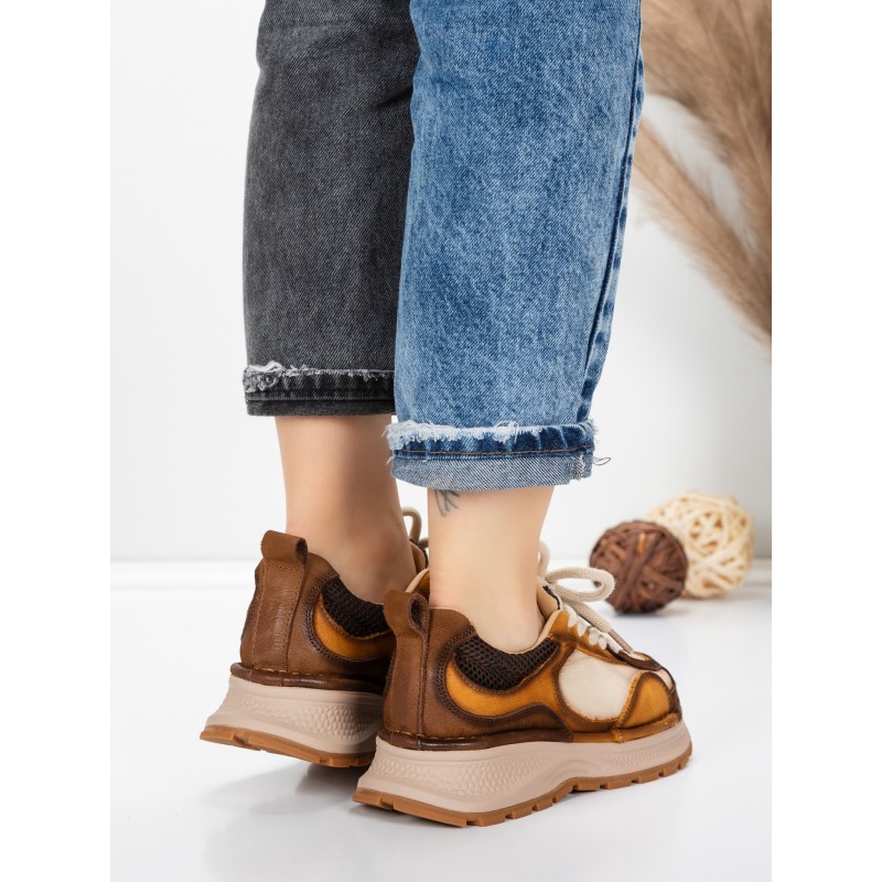 Dámska športová obuv vyrobená z prírodnej kože 10018 Žltá | Franco Gerardo