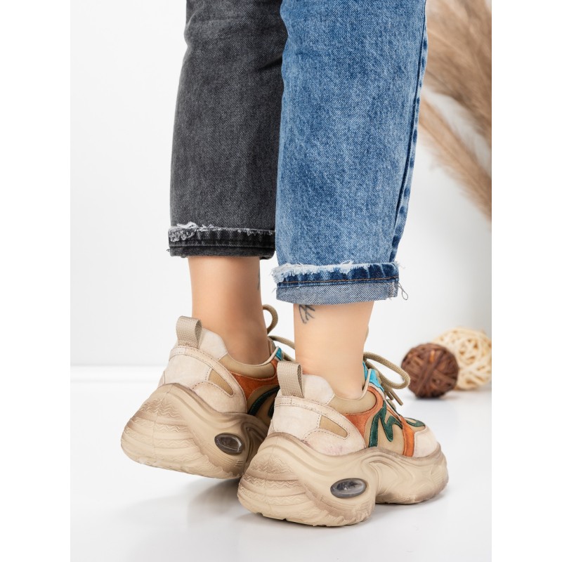 Dámska športová obuv vyrobená z prírodnej kože HY2128 Krémovej farby-Zelená | Franco Gerardo