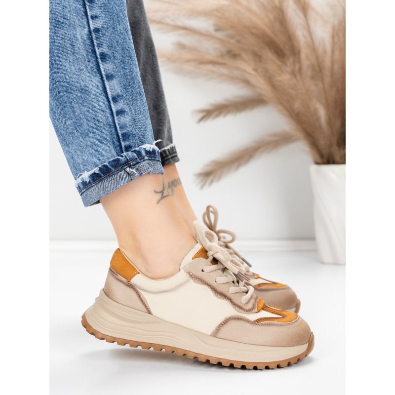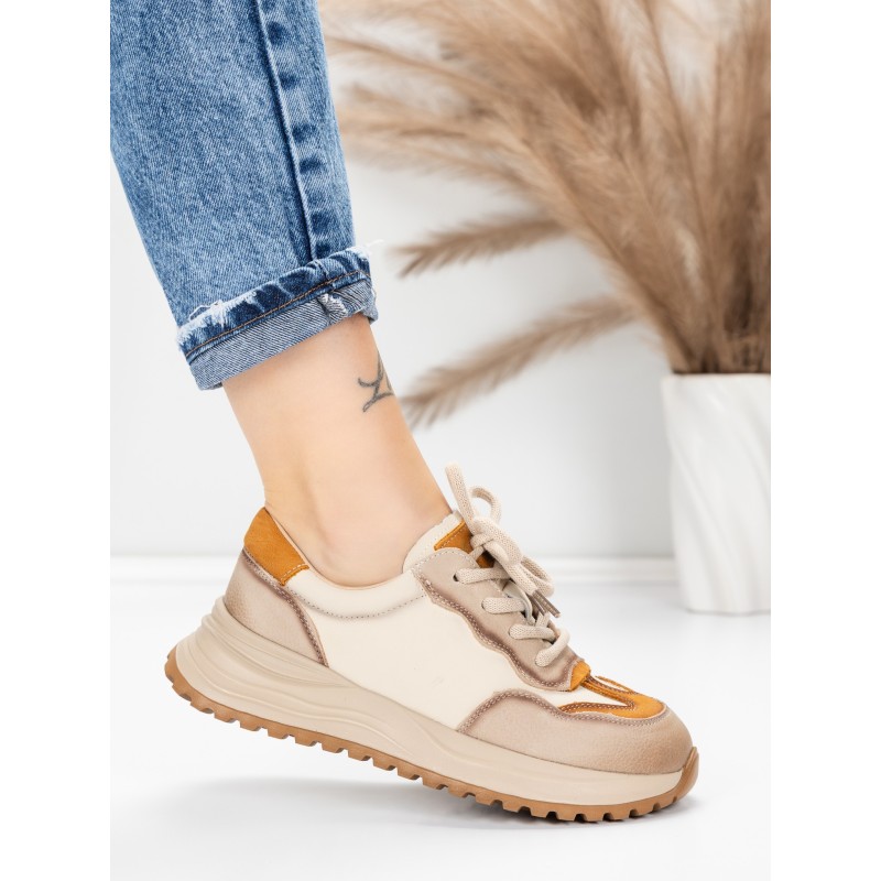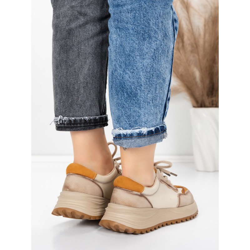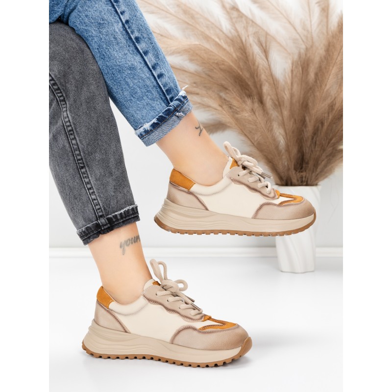 Pantofi Sport Dama din piele naturala 572305 CREAM-YELLOW | FRANCO GERARDO