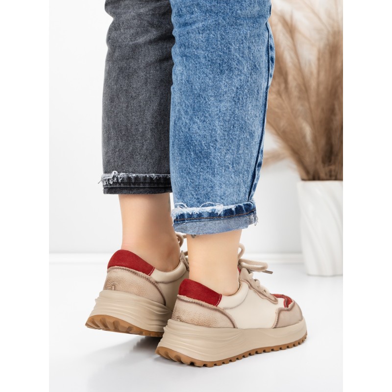 Dámska športová obuv vyrobená z prírodnej kože 572305 Krémovej farby-Červená | Franco Gerardo