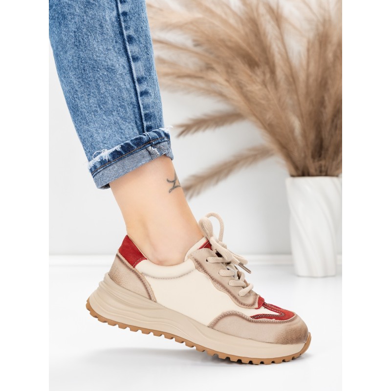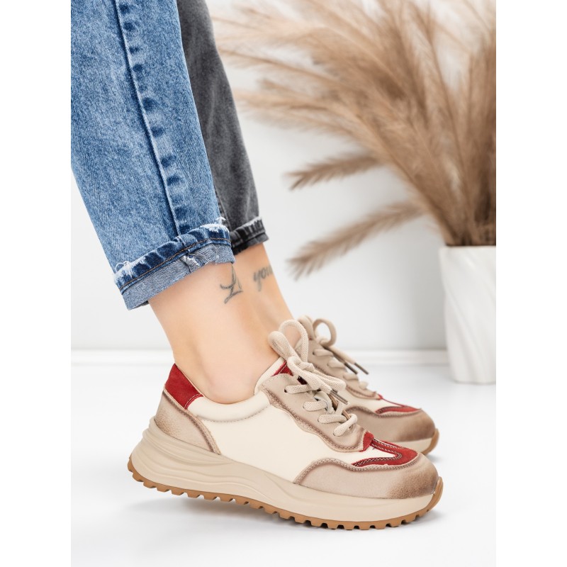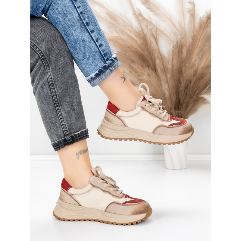 Pantofi Sport Dama din piele naturala 572305 CREAM-RED | FRANCO GERARDO