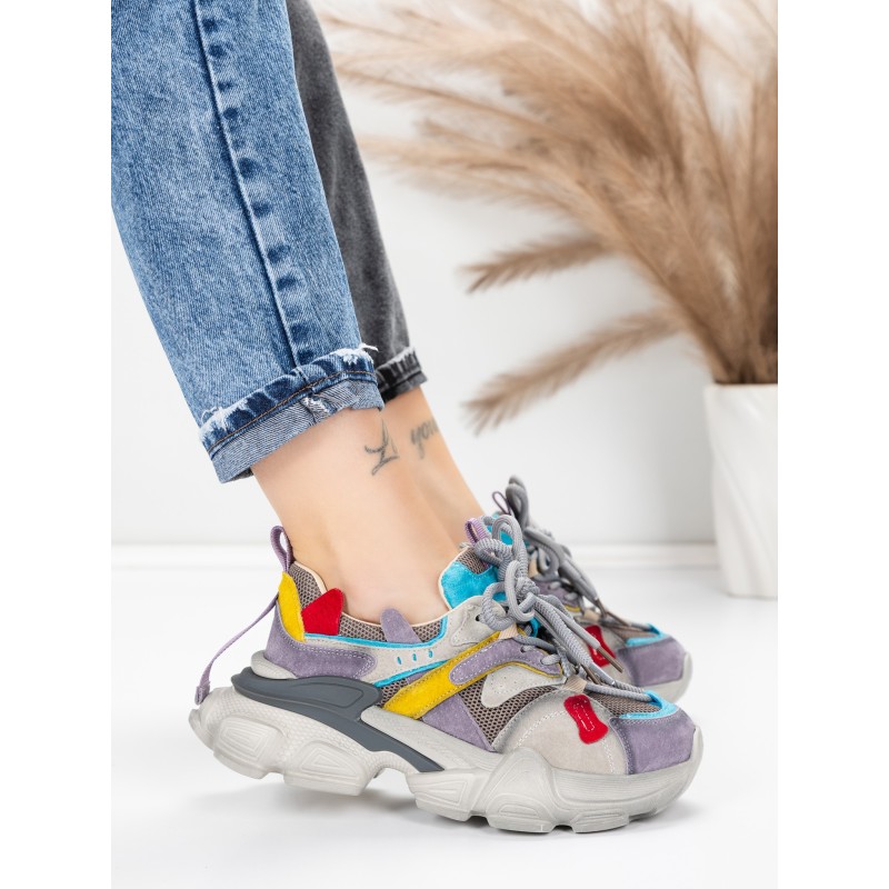 Dámska športová obuv vyrobená z prírodnej kože HY5782 Fialová-Modrá | Franco Gerardo