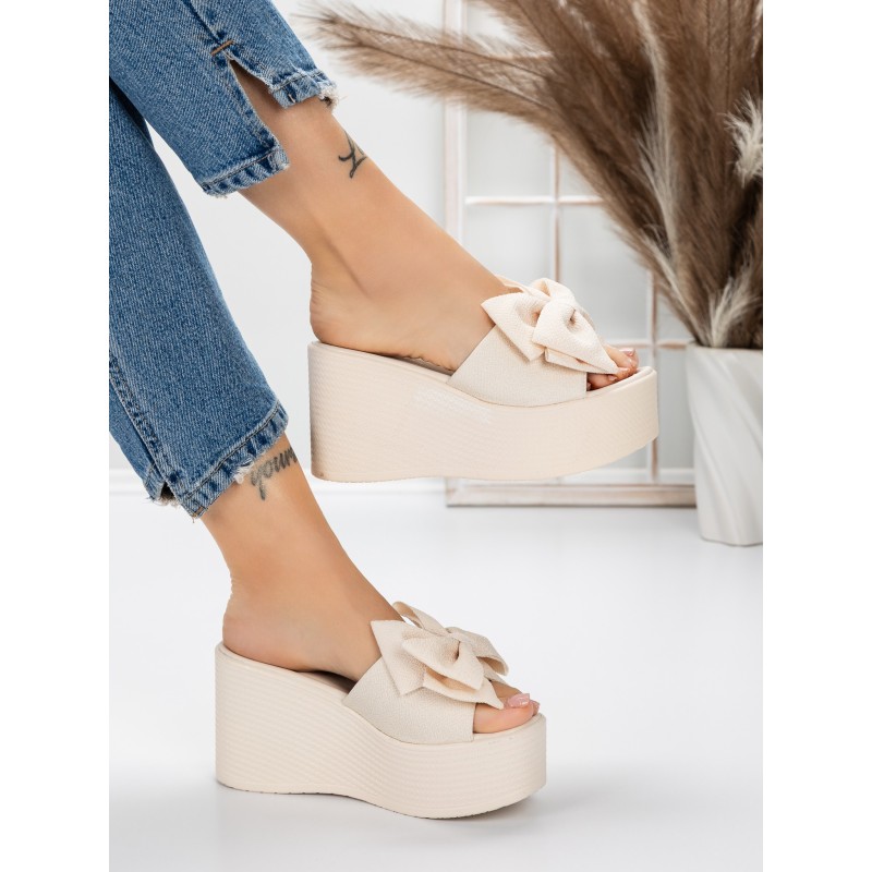 Dámske papuče s platformou 5WL8 Béžová | Mei