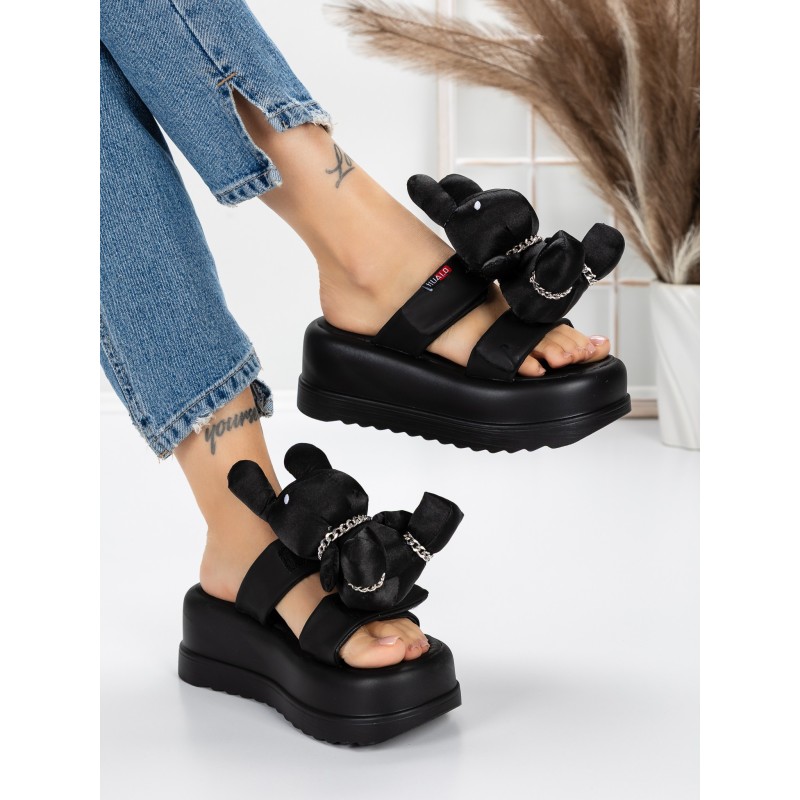 Dámske papuče s platformou 3WL229 Čierna | Mei