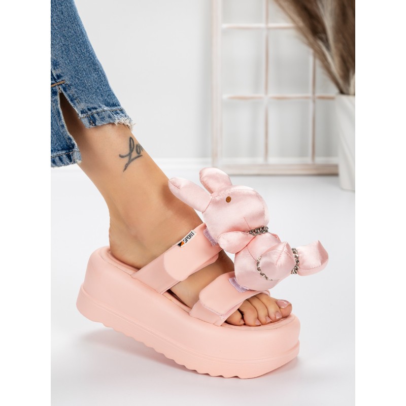 Dámske papuče s platformou 3WL229 Ružová | Mei