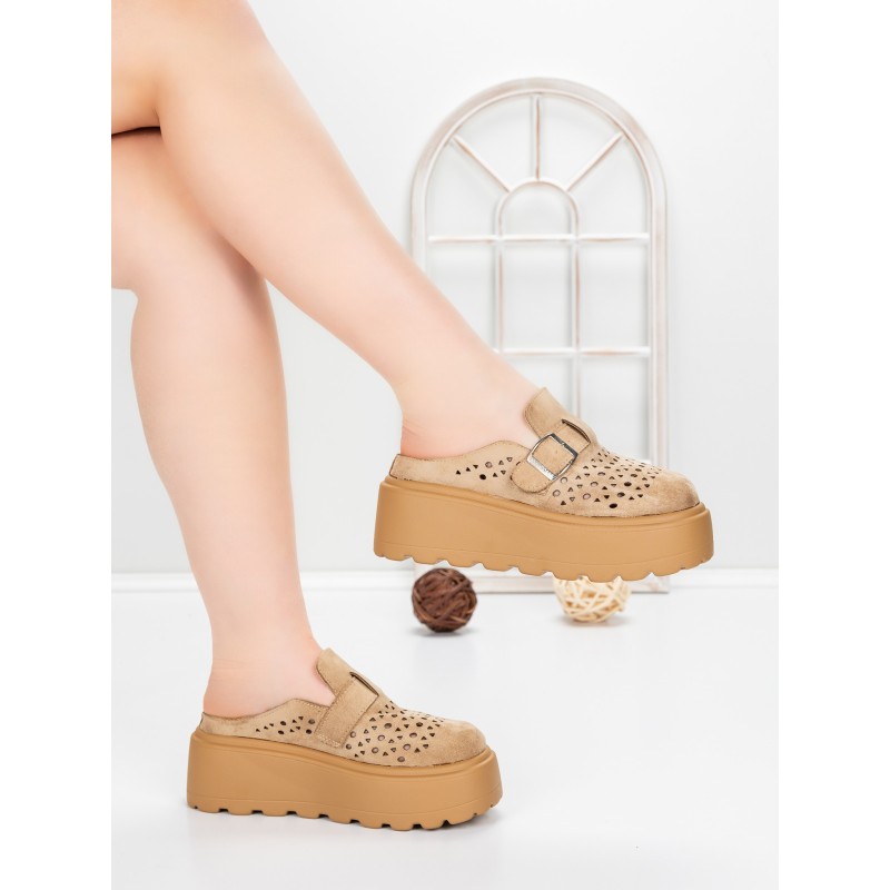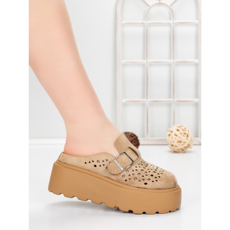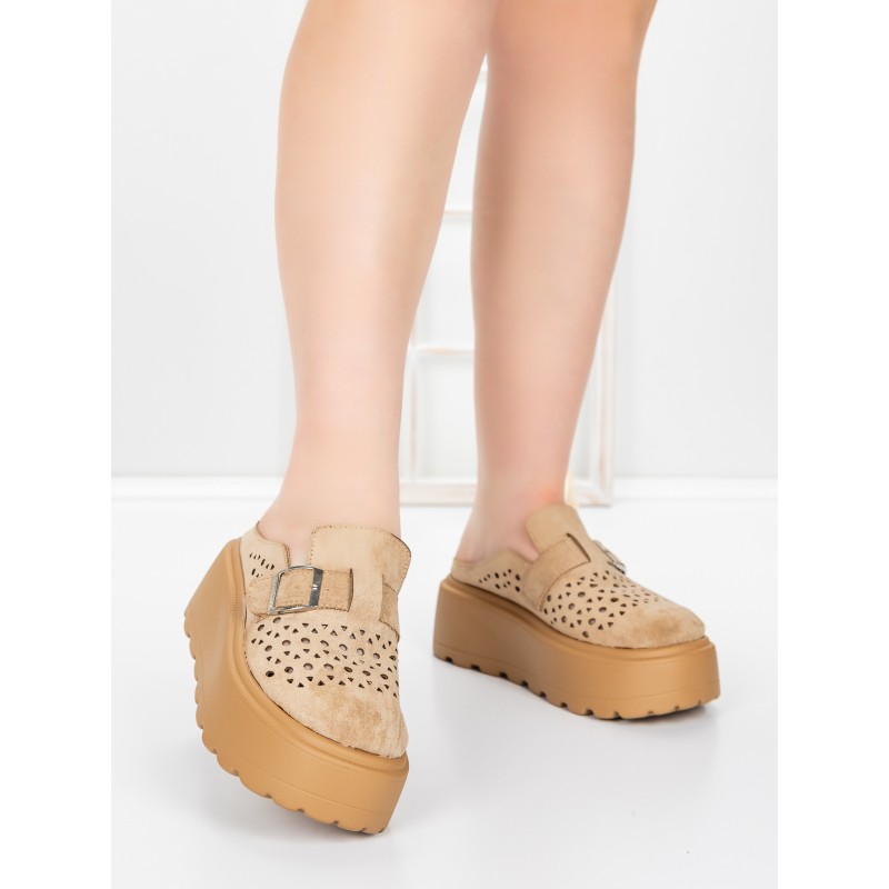 Dámske papuče s platformou 5WL113 Khaki farba | Mei
