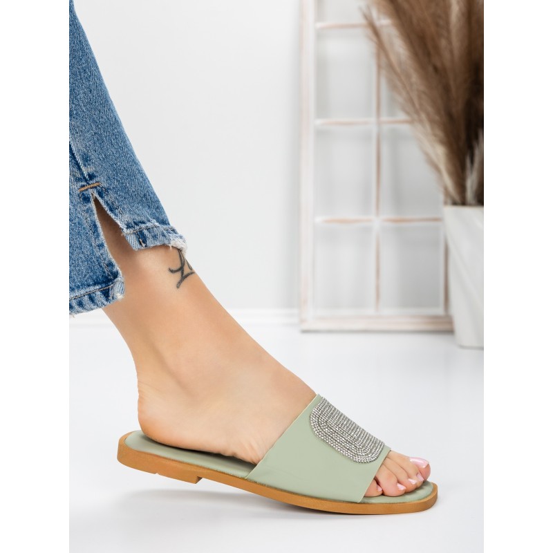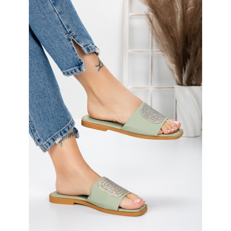 Dámske papuče s nízkou podrážkou 3AW308 Zelená | Mei