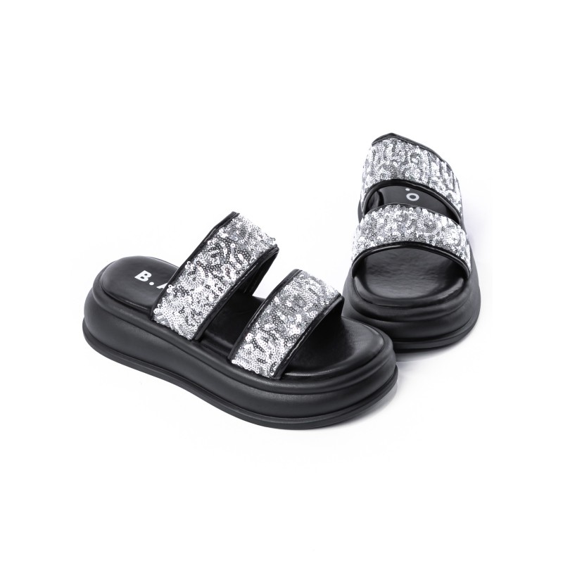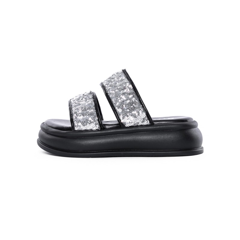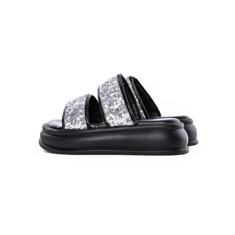 Dámske papuče s nízkou podrážkou 888-2 Čierna-Strieborná | Fashion