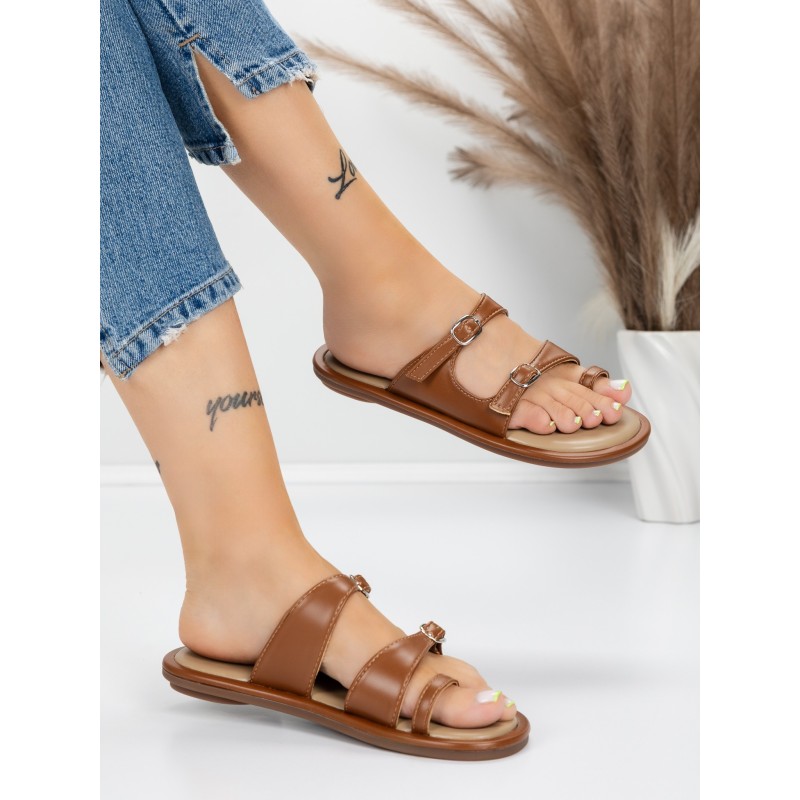 Dámske papuče s nízkou podrážkou J588-5 Hnedá | Mei