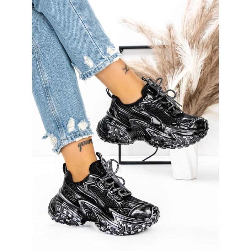 Dámske topánky na platforme 5WL83 Čierna-Strieborná | Mei