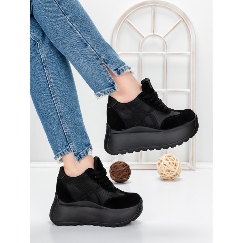 Pantofi Sport Dama cu Platforma 5WL111 BLACK | MEI