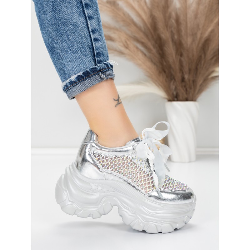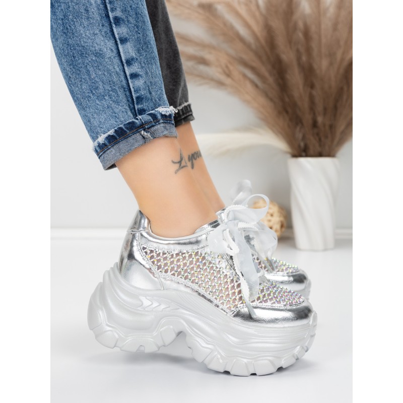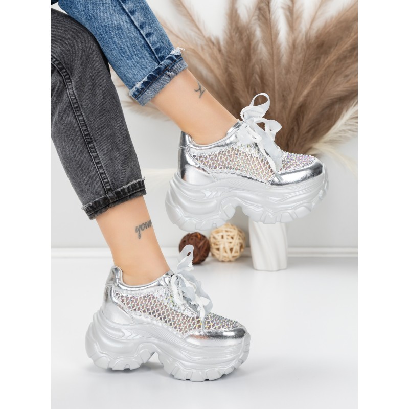 Dámske topánky na platforme 0897-36 Strieborná | Mei