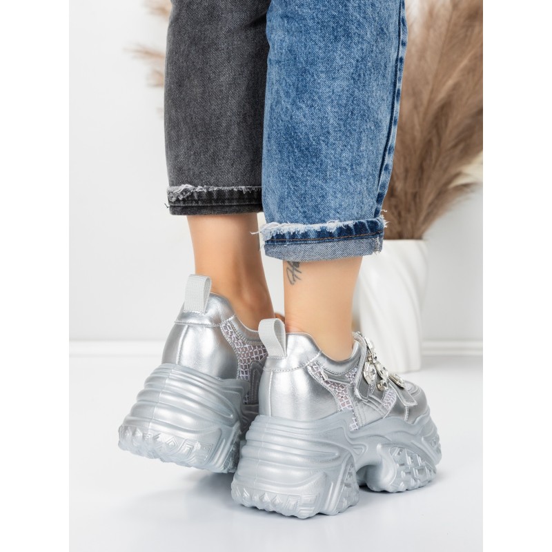 Pantofi Sport Dama cu Platforma 6166-80 SILVER | MEI